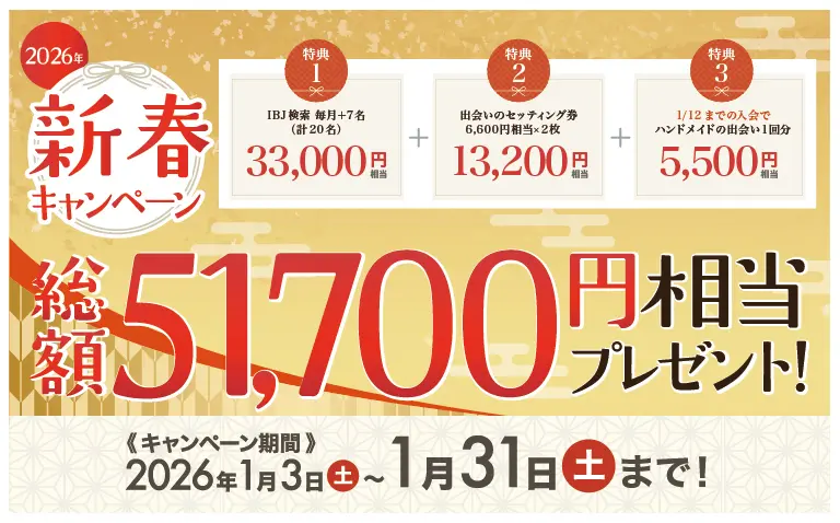 まずは、【2026年1月】に実施されている期間限定の結婚相談所のキャンペーンをご紹介!
