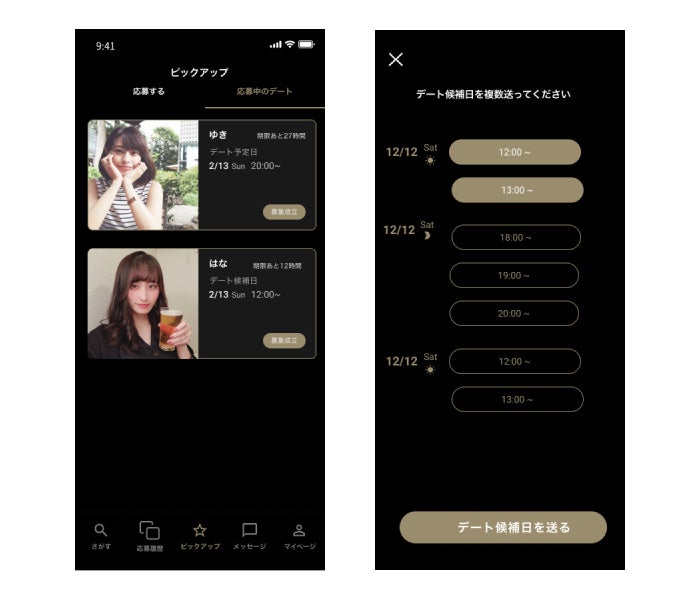 ピックアップの画面では、24時間ごとに10人ずつ更新されるので、次々に新しい人気のある女性ユーザーから好みの女性を見つけて、デート候補日を複数送ってアプローチしていきましょう。